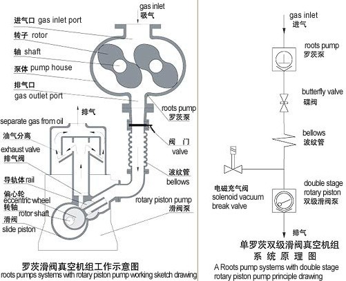 四、JZPH羅茨滑閥真空機(jī)組的工作原理圖: |